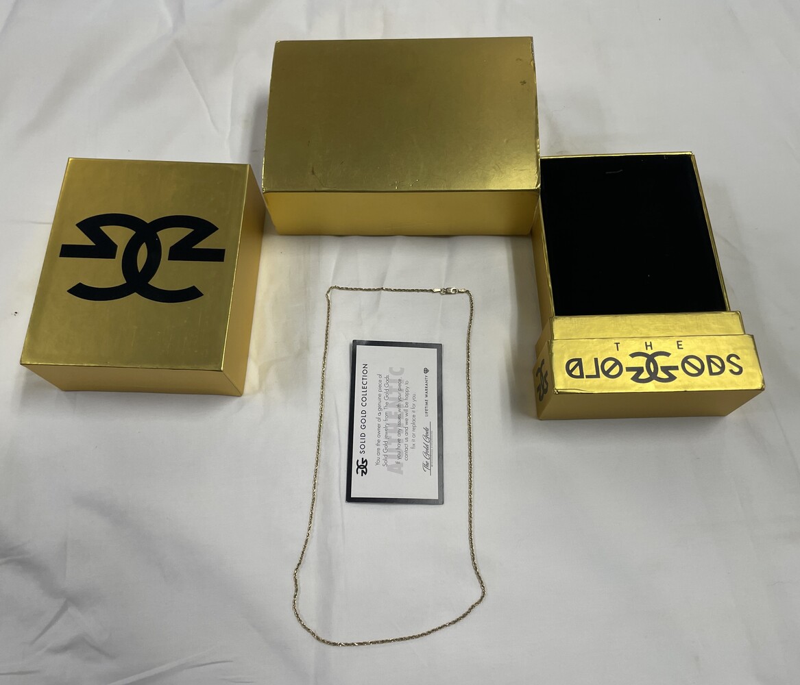 The Gold Gods - 20" Rope Chain - 14K - YG - in Box . Chain actually measures at 21" In Very Good Condition. 4.2G