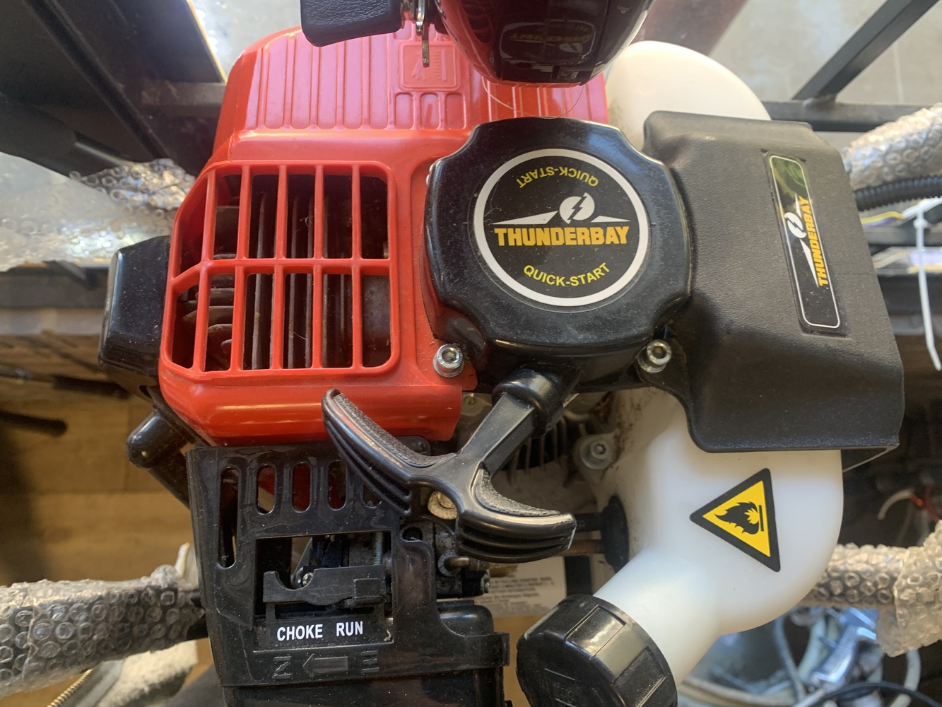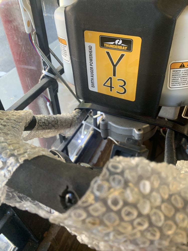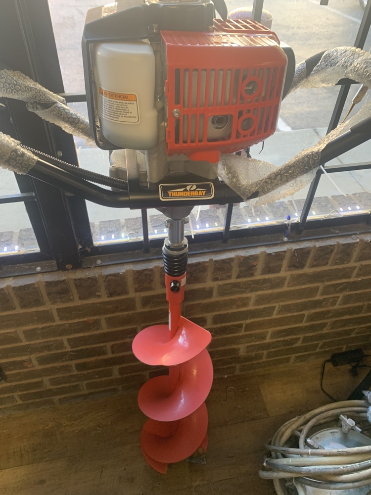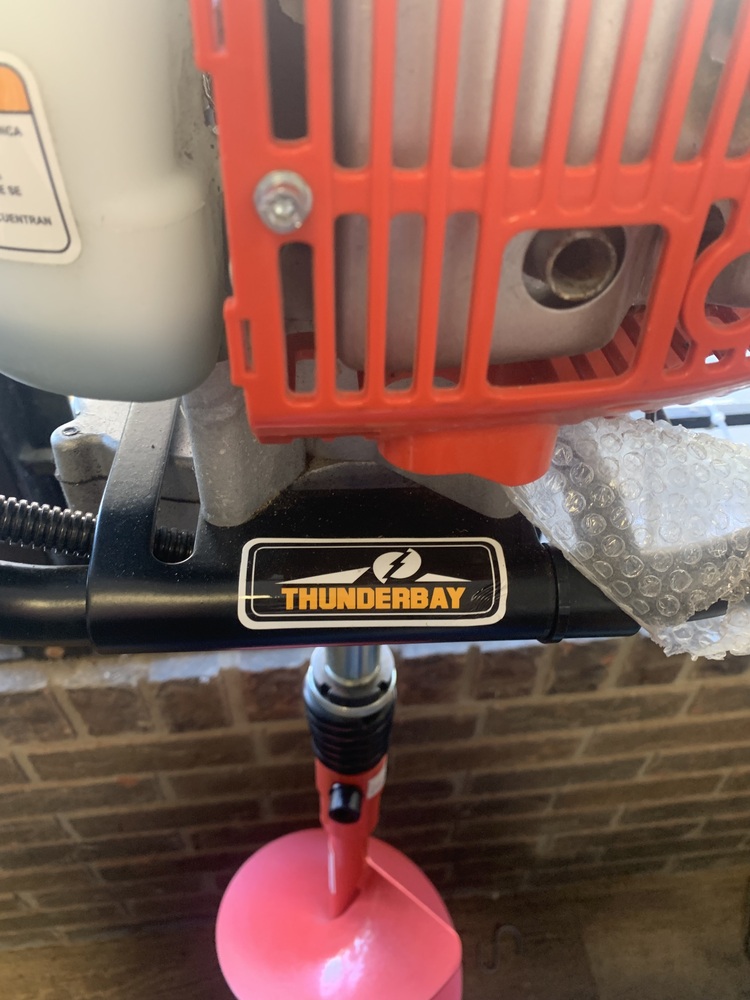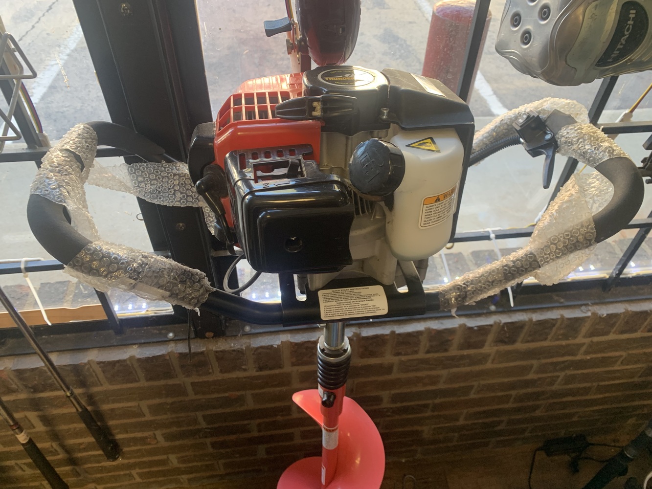 This is a preowned ThunderBay Y43 Earth Auger that is in near new condition. The Y43 One Man Earth Auger Powerhead combines a powerful 43cc two cycle engine with heat treated, precision cut gears in a rugged transmission to make drilling holes a breeze. The ThunderBay Y43 Earth Auger is a high-performing gardening tool used to drill holes in the ground. It features an easy start manual recoil fuel delivery system and an ergonomic design for comfortable handling. Ideal for planting trees, installing fence posts, or construction work. Efficient, reliable, and time-saving.