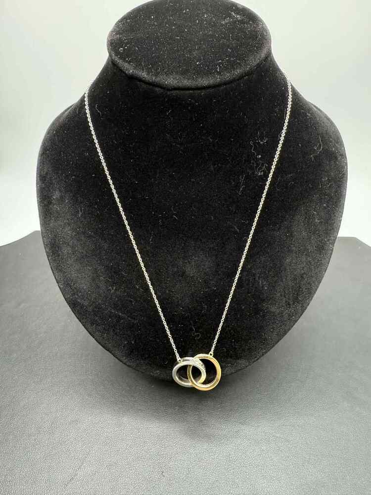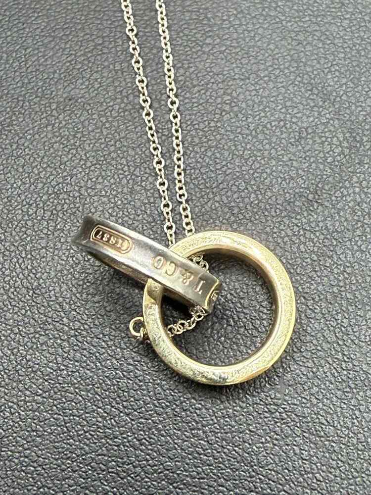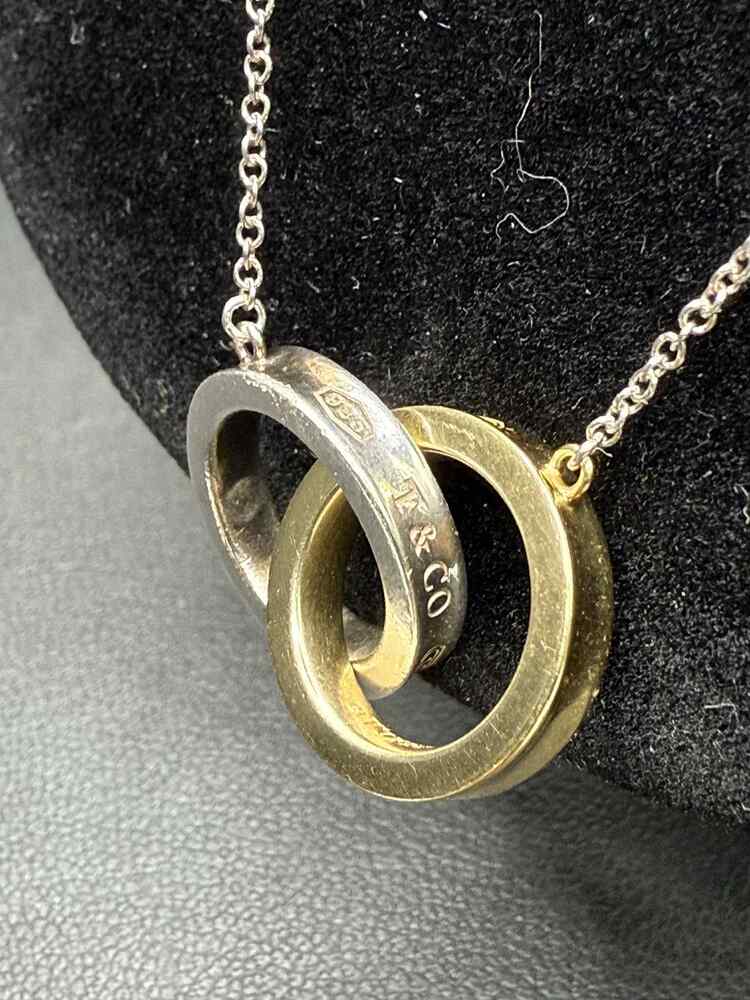 5.90gms Necklace 3 grams of18k gold with 2.9 grams of 92.5% silver necklace Tiffany K18yg silver 1837 interlocking necklace 15.5" long