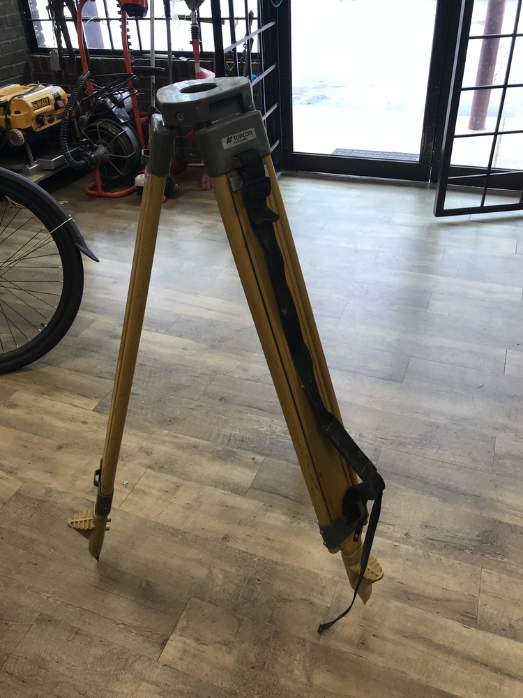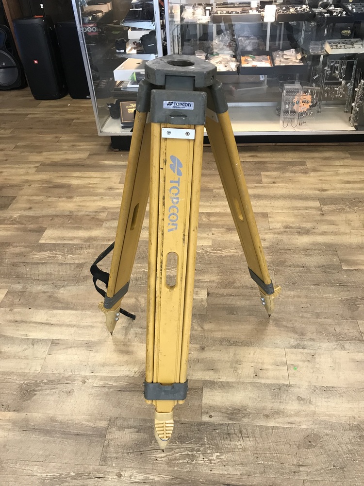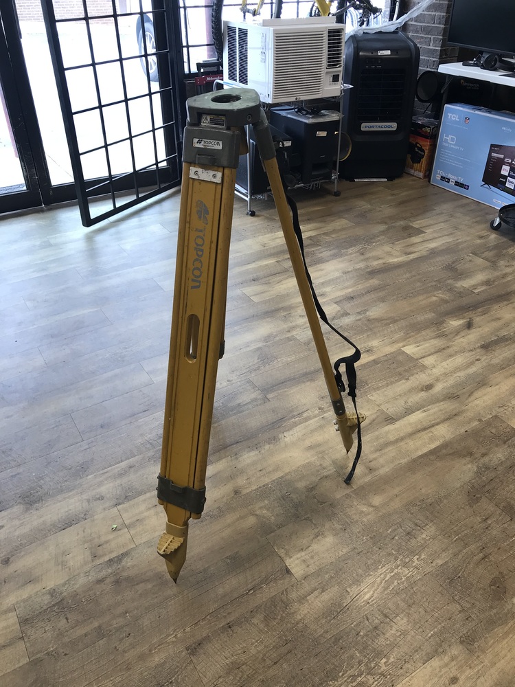 | The Topcon 59010 tripod is a robust, durable piece of equipment designed to hold and stabilize surveying instruments such as theodolites, lasers, and total stations. It features adjustable legs that provide stability on uneven terrain. Made from heavy-duty aluminum, it's lightweight yet sturdy. It's characterized by a flat head with a 5/8 thread for attaching devices. This tripod offers reliable support, ensuring precision in measurements and surveying tasks. Suitable for construction, site surveying and civil engineering projects. Missing the buckle to secure legs for storage. |