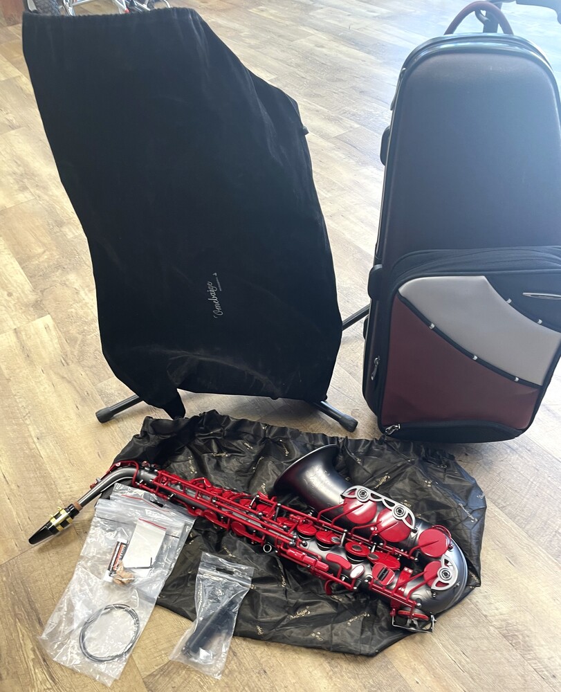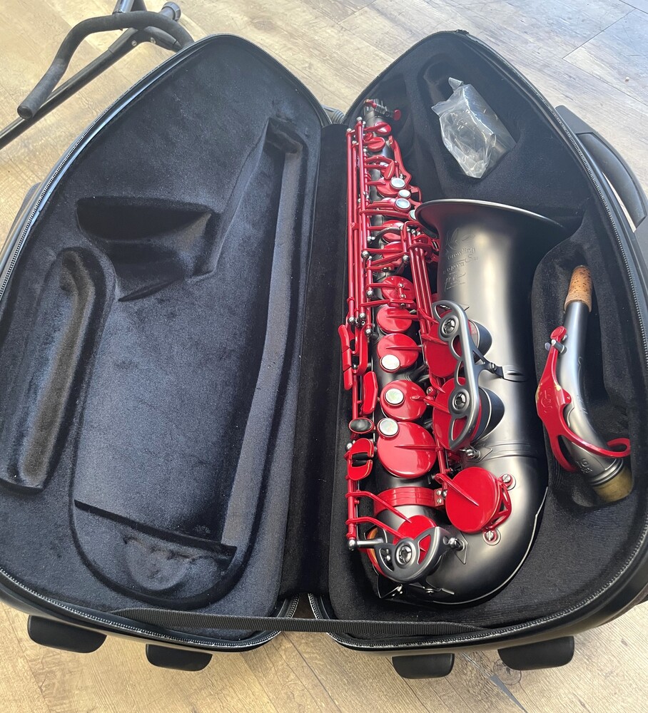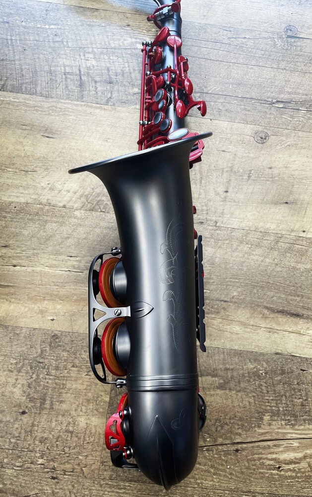 Red Lava Special Edition saxophones feature many advanced designs to improve your playing experience. Adjustable palm keys provide a custom fit to each player’s hands so you can play with confidence and comfort. These horns feature premium graded Italian Pisoni pads as well as metal resonators that provide players with a big sound and bright tone. Uprise series saxophones are also fitted with rod protection, double braces, custom mechanisms that prevent the very common problem of the G# and low C# keys sticking and rolled tone holes. These tone holes are individually drawn and rolled giving the advantage of longer pad life, a beautiful broad sound and an improved response time when playing. Stand out from the crowd with this beautiful and eye-catching saxophone; designed with top-of-the-line specifications and materials for musicians that demand nothing but the best.