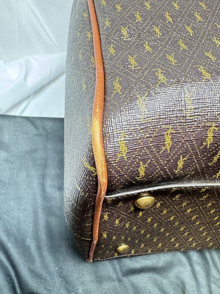 Ideal for travelling, this duffle bag from Saint Laurent comes with top handles and a removable shoulder strap. In brown coated canvas with tanned leather trims, it features an all-over monogram print and a removable, leather-encased padlock charm.