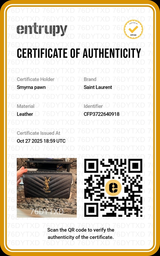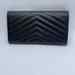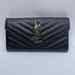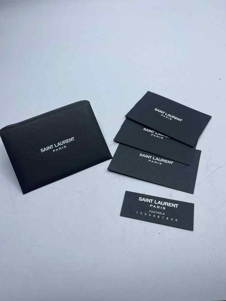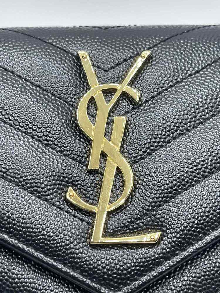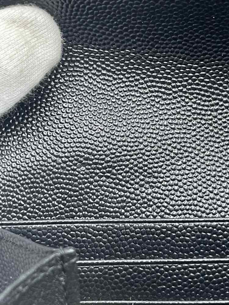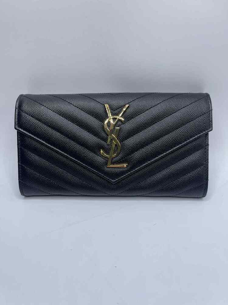 The Yves Saint Laurent YSL Monogram Large Flap Wallet in Grained Leather is in good condition. The YSL logo hardware has scratcheson it. The rest of the exterior of the wallet is in good condition. The flap has marks from the zipper pushing against the leather. The bag comes with box, dustbag, and a COA from Entrupy. The overall condition of the wallet is a (A).